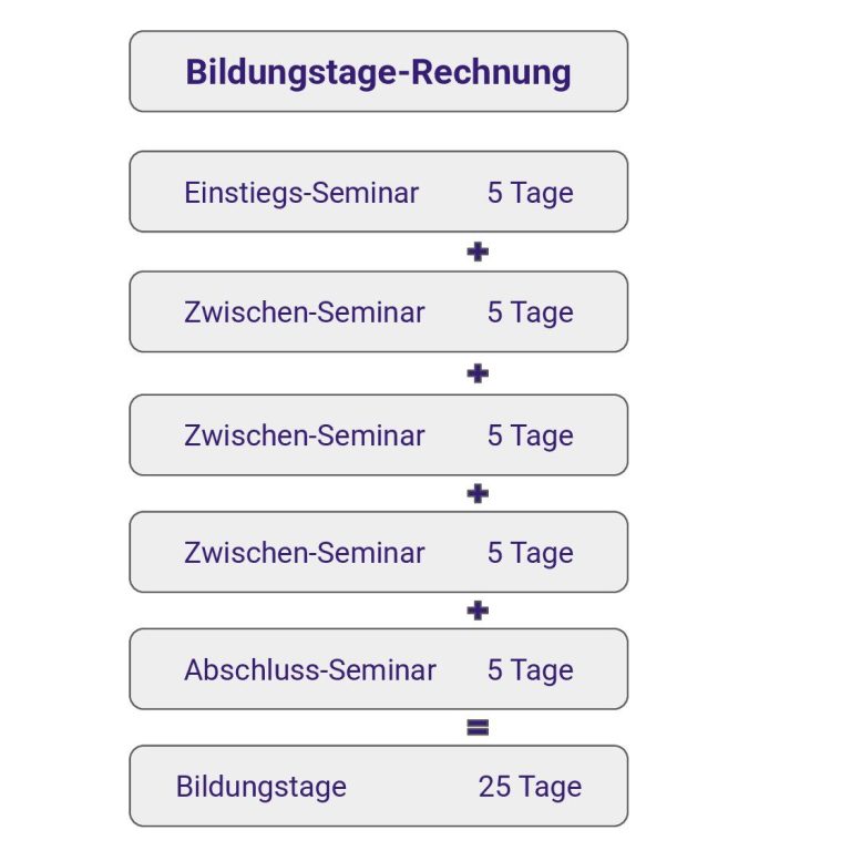 Um alle Bildungstage bei uns abzuleisten, buchst du fünf Seminare aus unserem Programm.